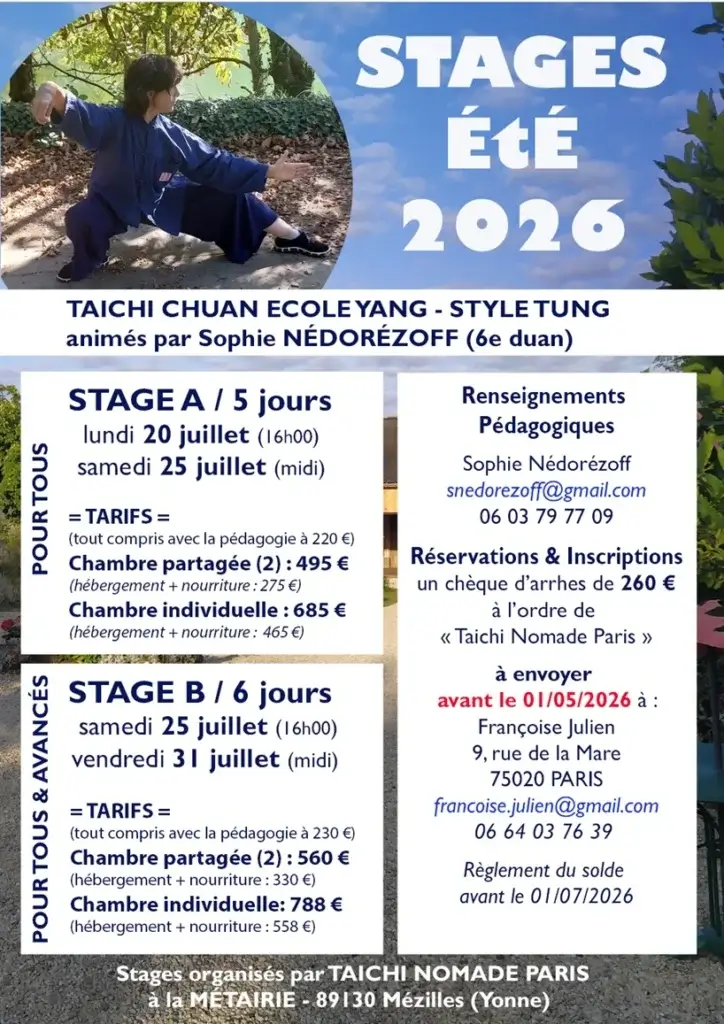 L’Association Taichi Nomade Paris organise deux Stages de Taichi Chuan à Mézilles animés par Sophie NÉDORÉZOFF